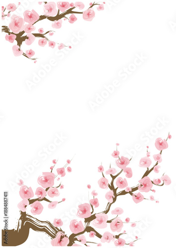 © Studio Trinity, Obraz premium 和風デザイン素材 桜の枝花 フレーム 筆風