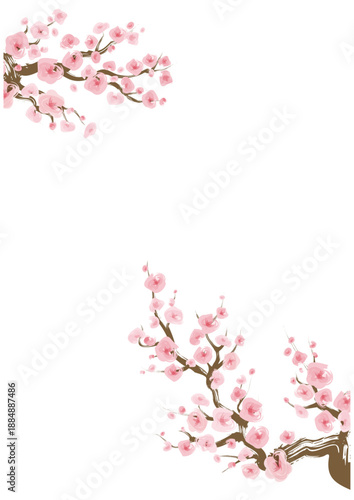 Obraz premium 桜の花 フレーム 縦レイアウト向け 筆描き