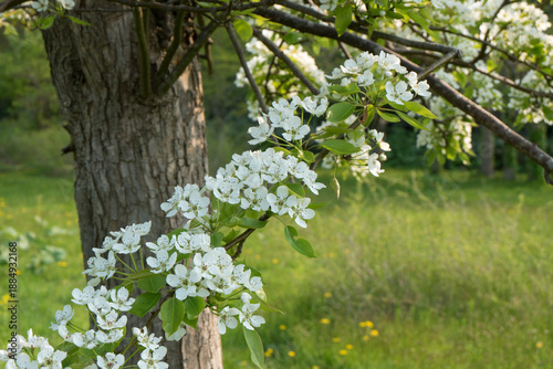 © oonoteruaki, Obraz premium 白い桜咲くミヤマザクラ公園の風景