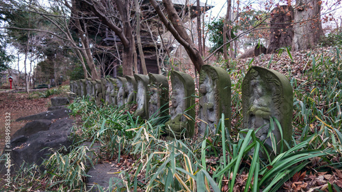 Obraz premium 冬の境内の石仏
