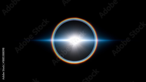 Fototapeta premium 黒背景に浮かぶ虹色の円環と中心で輝く閃光