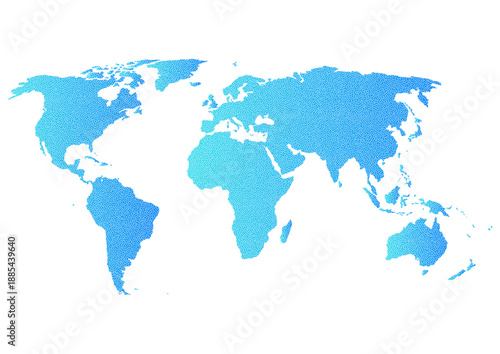 © osame, Obraz premium 青グラデーションに白点描の世界地図