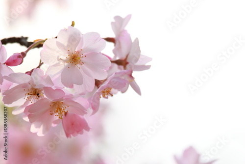 Fototapeta premium 淡いピンクの思川桜のクローズアップ 白背景