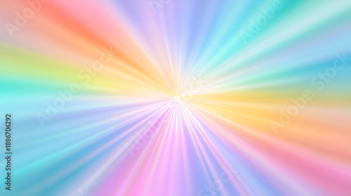 © izzyU, Obraz premium パステルカラーの放射状ラインが広がる虹色のサンバースト背景