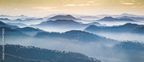 Fototapeta premium 겹겹산과 능선의 아침 풍경(첩첩산중)