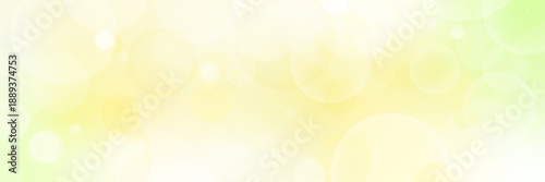 © neena , Naklejka premium 明るいグリーンとイエローの抽象背景|やさしい光とバブル・玉ボケのベクター 横長