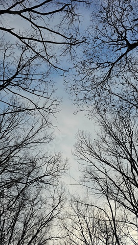 Obraz premium 겨울 숲 사이로 열린 하늘