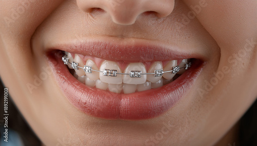 © bephoto, Obraz premium ワイヤーを道に見立て日本人の歯が整列へ進む物語を描く