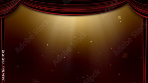 © 時々雨, Obraz premium 赤いカーテンとスポットライトのステージ背景