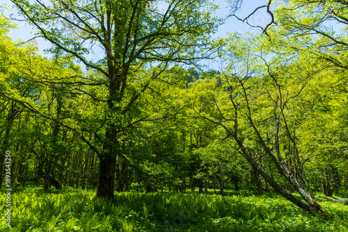 © Yuta1127, Fototapeta premium 日本の風景・初夏 長野 新緑の上高地 徳沢