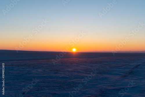 © 雅彦 山本, Obraz premium ハイラルの雪原に沈む夕陽