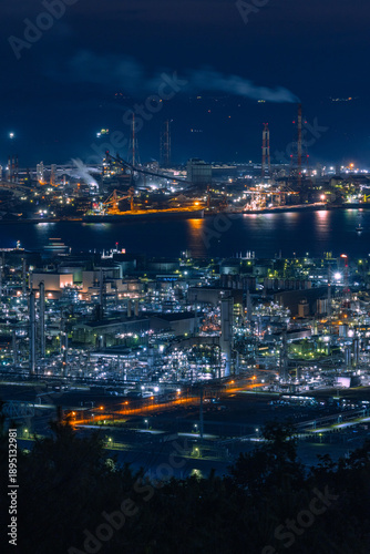 © pespiero, Fototapeta premium 日本 岡山県倉敷市、鷲羽山スカイラインの水島展望台からの水島コンビナートの工場夜景