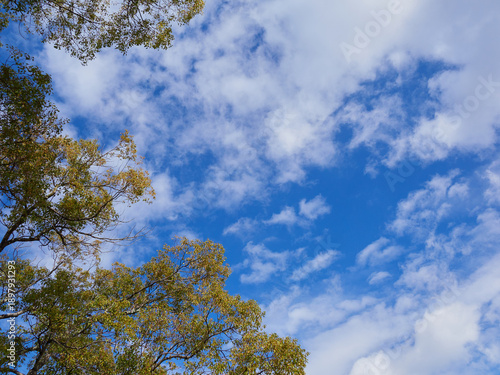 © zheng qiang, Obraz premium 冬の昼の公園の森と綺麗な青空の風景
