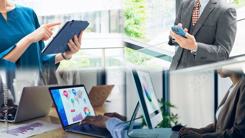 © metamorworks, Obraz premium 様々なデジタルデバイスを使う人々のコラージュ映像