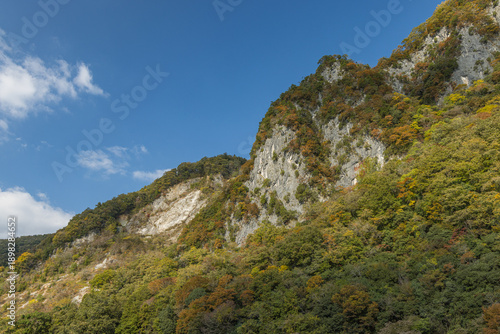 Obraz premium 日本 岡山県新見市井倉にある井倉峡の絶壁と紅葉