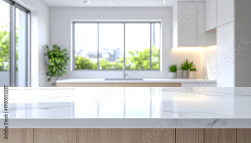 Fototapeta premium 自然光が差し込む清潔感のあるキッチンの背景とインテリア3