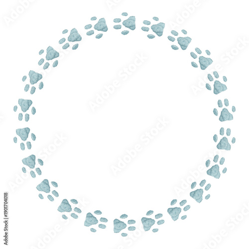 © Stitch Palette, Obraz premium 手刺繍の肉球円形フレーム