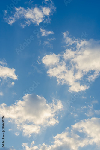Obraz premium 冬の寒い朝 澄んだ青空と朝日に輝く雲のクローズアップ05