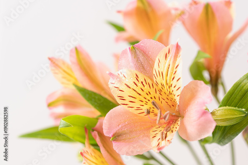 Fototapeta premium ピンクとオレンジ色のアルストロメリアの花を白背景で室内撮影18