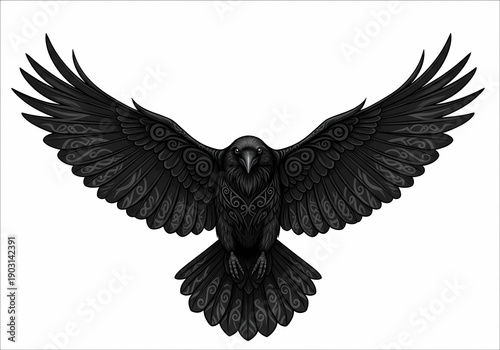 Obraz premium 漆黒のカラス、翼を広げた優美な姿のイラスト