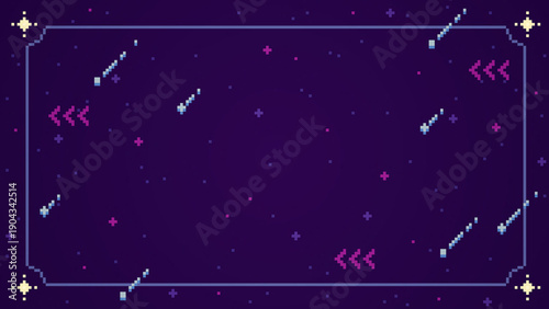 Fototapeta premium ドット絵 宇宙風のおしゃれでかわいい配信画面 シンプルな背景装飾イラスト フレーム 16:9 ピクセル
