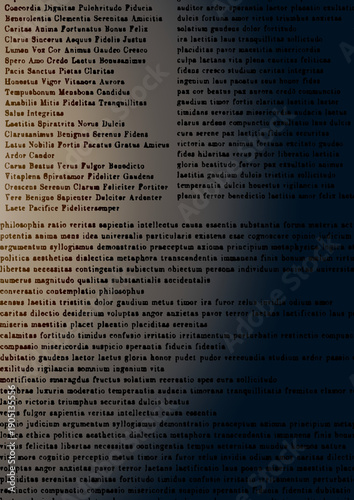 © みずもり, Obraz premium 暗闇に浮かぶ古い書物のテキスト背景・アンティークな英字新聞風の幻想的テクスチャ