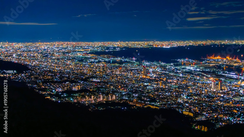 Obraz premium 兵庫県神戸市 摩耶山・掬星台から一望する大阪湾と阪神間の大パノラマ夜景