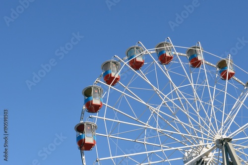 © Karakol, Fototapeta premium Колесо обозрения на фоне голубого неба