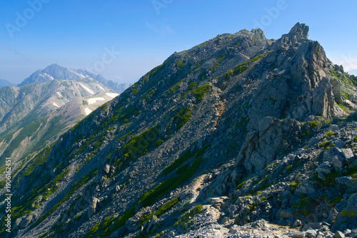 Obraz premium 北アルプスの立山、雄山付近から望む大汝山と後方の剱岳