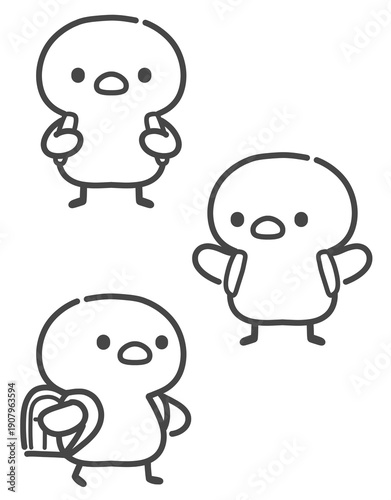 © Nitomaru, Obraz premium ランドセルや通学かばんを背負って通学するひよこの手書き線画イラスト 登下校の風景