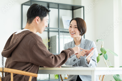 © pain au chocolat, Obraz premium ミドルの男性に提案するビジネスウーマン