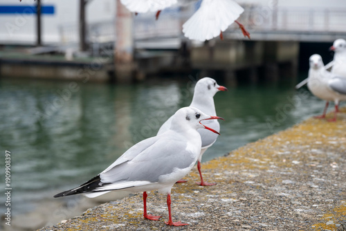 Fototapeta premium 日本の岡山県の新岡山港で見たかわいいユリカモメ
