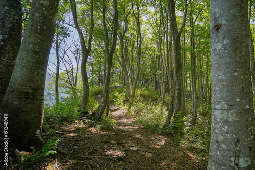 Obraz premium 春の大嵐山の緑が美しいブナ並木