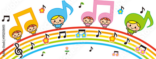 Obraz premium 誕生日, フレーム, 子供, 友達, 虹, 花, 五線譜, キャラクター, 幼稚園, 保育園, 卒園式, 卒園, 入園, 入園式, 音楽, 音符, 元気,...
