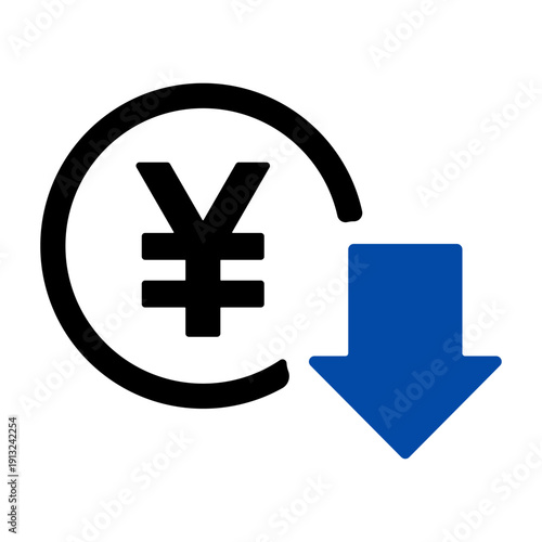 © TARTE_TACHIN, Obraz premium 円マークと下落の矢印 支出減少を表すアイコン