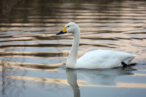 © もふいち, Obraz premium 夕方のコハクチョウ