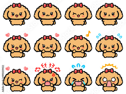 © kiko, Obraz premium かわいいトイプードルの落書きイラスト素材セット4