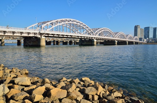 Naklejka premium 淀川河川公園から梅田方面を望む