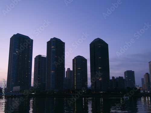 Fototapeta premium 夜明けのタワーマンション群と水面