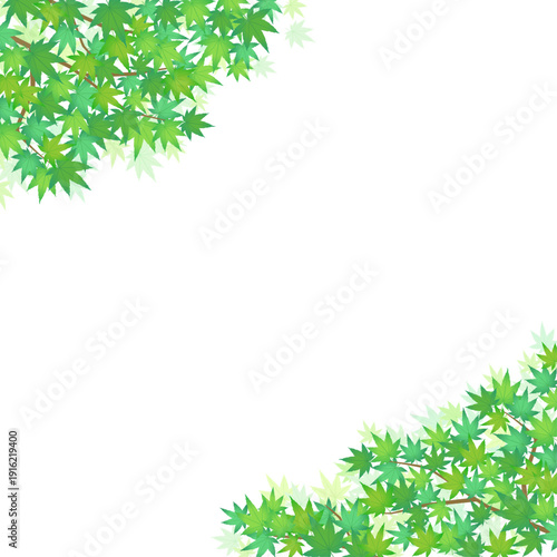 Fototapeta premium 緑のもみじフレーム4_正方形