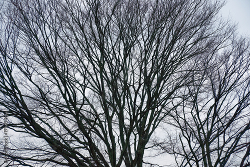 © Tokuyiro, Obraz premium 冬の空に網目状に広がる落葉した樹木の幾何学的な枝ぶり