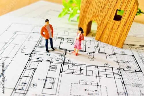 © 78art, Obraz premium マイホームの間取りを考える夫婦
