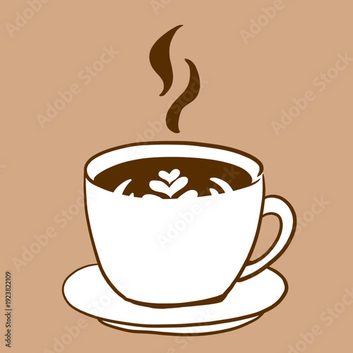 Obraz premium おしゃれなラテアートのコーヒーカップアイコン(茶色背景)