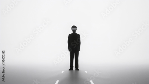 Fototapeta premium 白い逆光の中で人物は影だけとなり分岐が光で示される
