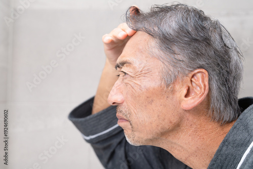 © aijiro, Obraz premium ヘアケアをするシニア男性 ビューティーイメージ