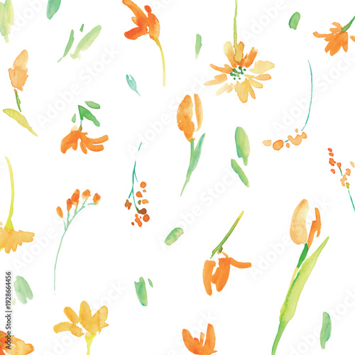 © necomammma, Obraz premium 水彩画。水彩タッチの黄色い花イラストセット。黄色いチューリップのベクター植物背景。