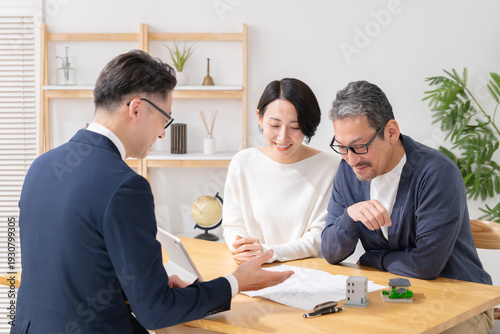 © Peak River, Obraz premium 不動産の営業をするビジネスマン
