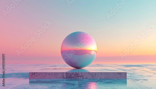 Obraz premium 幻想的な夕景に浮かぶ未来的ミニマルグラデーション球体