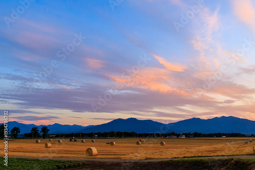 Obraz premium 夕焼けと十勝の畑
