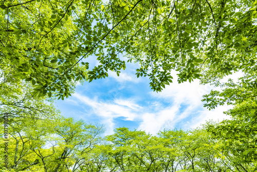 © miiko, Obraz premium 新緑の木と青空